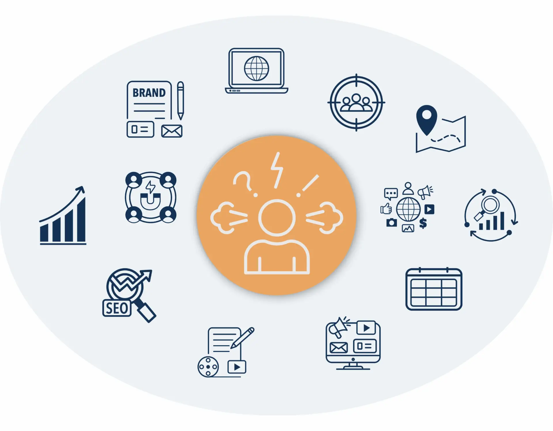 No. Once the project is complete, you’ll have a complete marketing strategy and a 3-month execution roadmap to install your Full Loop Marketing System™, including specific content to launch, marketing channels to optimize, e.g., website, Google Business Profile, social media, ads, and campaigns to test, like Facebook ads, display ad, etc.
