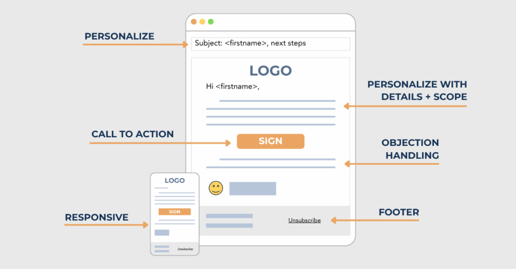 Include sections in the template that you can personalize for the prospect, and pre-written sections to keep messaging consistent: